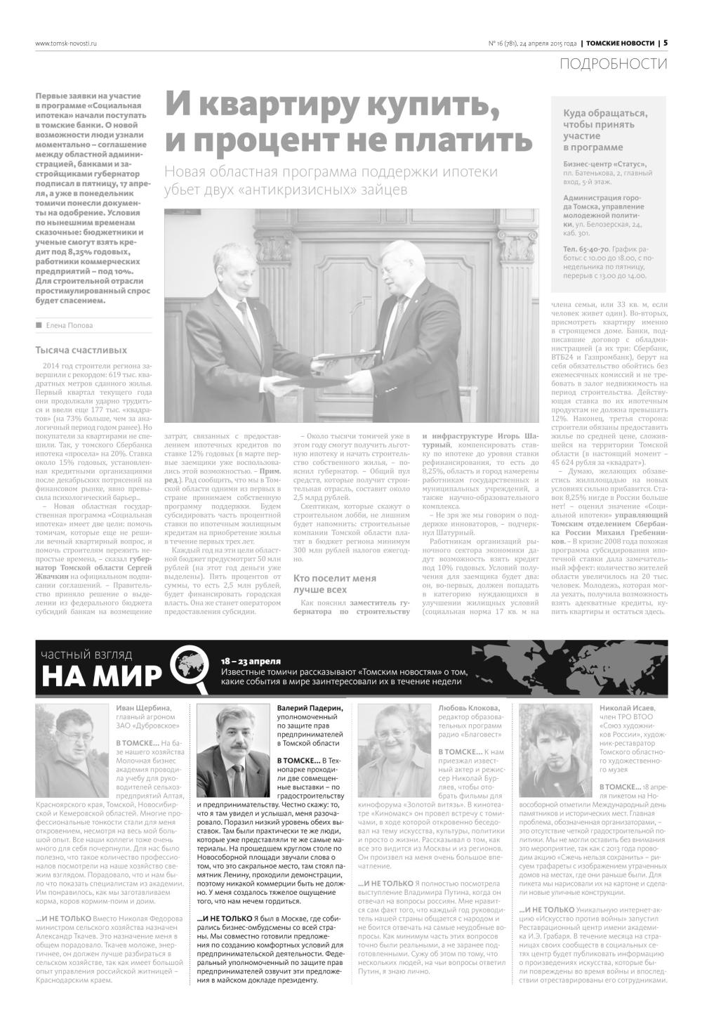 Главная СМИ о нас Томские новости: Валерий Падерин в рубрике «Частный взгляд на мир»