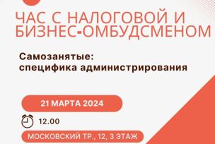 Приглашаем обсудить тему «Самозанятые»: специфика администрирования» в рамках проекта «Час с налоговой и бизнес-омбудсменом»