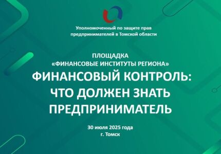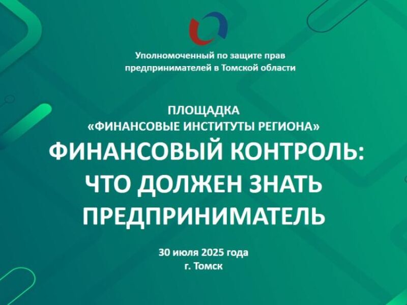 30 июля 2025 года в 11:00 по адресу: г. Томск, пр. Ленина, 26 (Точка кипения) Уполномоченный по защите прав предпринимателей в Томской области при содействии Торгово-промышленной палаты Томской области проведет очередное мероприятие на площадке «Финансовые институты региона». Тема круглого стола «Финансовый контроль: что должен знать предприниматель».