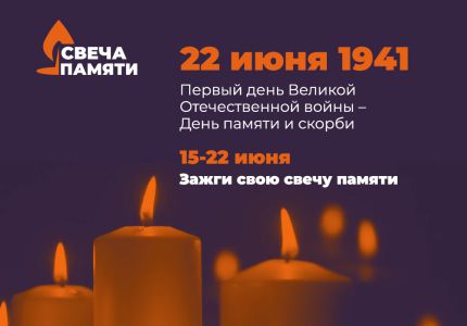 С 15 по 22 июня проходит всероссийская акция «Свеча памяти», приуроченная к дате начала Великой Отечественной войны — 22 июня 1941 года. В этом году, в связи со сложной эпидемиологической обстановкой, акция пройдет в онлайн-формате. Приглашаем вас присоединиться и «зажечь» свою виртуальную свечу памяти на специальном сайте.