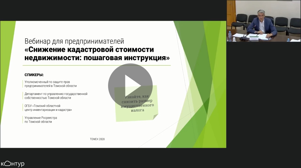 Подробно о процедуре оспаривания кадастровой стоимости рассказали представители департамента госсобственности, ОГБУ «ТОЦИК» и Росреестра на вебинаре, организованном Уполномоченным по защите прав предпринимателей в Томской области при поддержке партнера — АО «ПФ «СКБ Контур» в г. Томск.