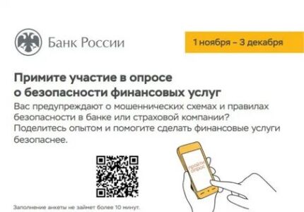 Банк России предлагает клиентам кредитно-финансовой сферы принять участие в анонимном опросе о безопасности услуг, предоставляемых финансовыми организациями. Ответить на вопросы могут как физические, так и юридические лица.